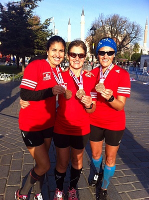 Nochmal eine "große Runde" zum Jahresende. Im Frühjahr war Filiz Elüstü schon in der Hansestadt Hamburg auf der Marathon Strecke unterwegs. Zum Jahresende ging es dann in die "alte Heimat". Zusammen mit zwei Freundinnen absolvierte sie den Istanbul Marathon (der einzige auf zwei Kontinenten). Auf der Strecke durch die Türkische Metropole kam sie nach 4:18:42 Stunden im Ziel an.