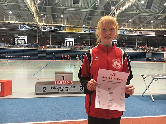 Toller Einstieg bei den Ostwestfälischen Hallenmeisterschaften in Bielefeld durch Lea Albers im Kugelstoßen. Erstmalig bei dieser Disziplin am Start belegte die W13erin mit 7,09 Metern einen überzeugenden 4. Platz bei den Titelkämpfen in Bielefeld.