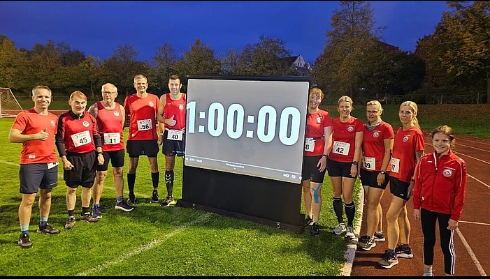 Bissle vom heimischen Stundenlauf inspriert veranstaltete die TSG Hofgeismar eine Stundenlauf auf ihrer Hausbahn. Mit dabei fünf Frauen und fünf Männer des SV. Über die 30min konnte sogar Charlotte Ahls als schnellste von allen über die Halbdistanz glänzen und legte 6.370 Meter auf die Bahn. Die anderen schlossen sich in Teams zusammen mit einem Frauen- einem Männerteam und einem Mixed Team über die volle Stunde. Am weitesten vorne plazierte sich dabei das Mixed Team (Matthias Ridder, Frank Hansmann und Martina Rinteln) mit ihrem zweiten Platz und 40.050 zurückgelegten Metern. Die "Desenberg Girls" kamen auf den vierten Platz in der Besetzung Stefanie Ridder, Christine Hansmann und Mechthild Koch mit 31.072 Metern sowie die "Arminia Männer" Truppe die mit Benjamin Ahls, Hermann-Josef Scholz und Peter Dingerkus Rang fünf holten mit 31.651 Metern.