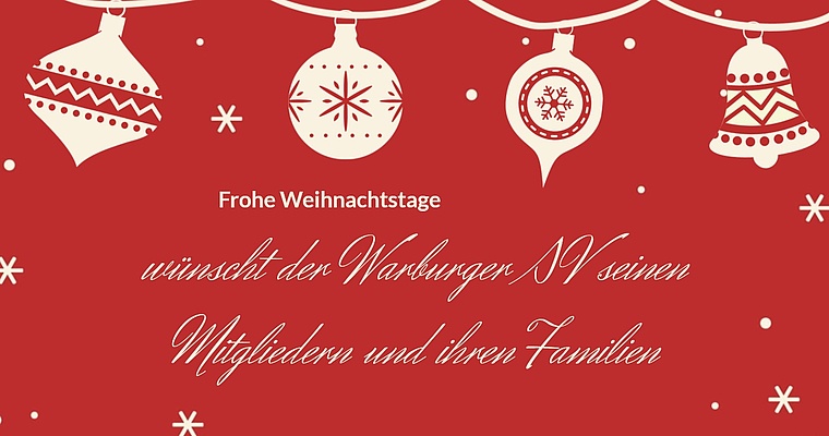 Der Warburger Sportverein wünscht allen Mitgliedern, ihren Familien, den Sponsoren des Vereins sowie allen Ehrenamtlichen die sich das ganze Jahr über für das Vereinsleben eingebracht haben frohe und vor allem mal ruhige Weihnachtstage.