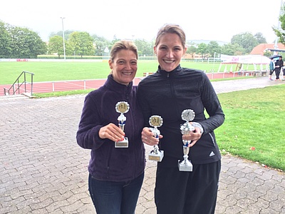 Marie Albers heist die glückliche Siegerin des "5 Kilometer" Laufs beim 38. Int. Altenauflauf in Borchen. Mit 18:07 Minuten durfte…